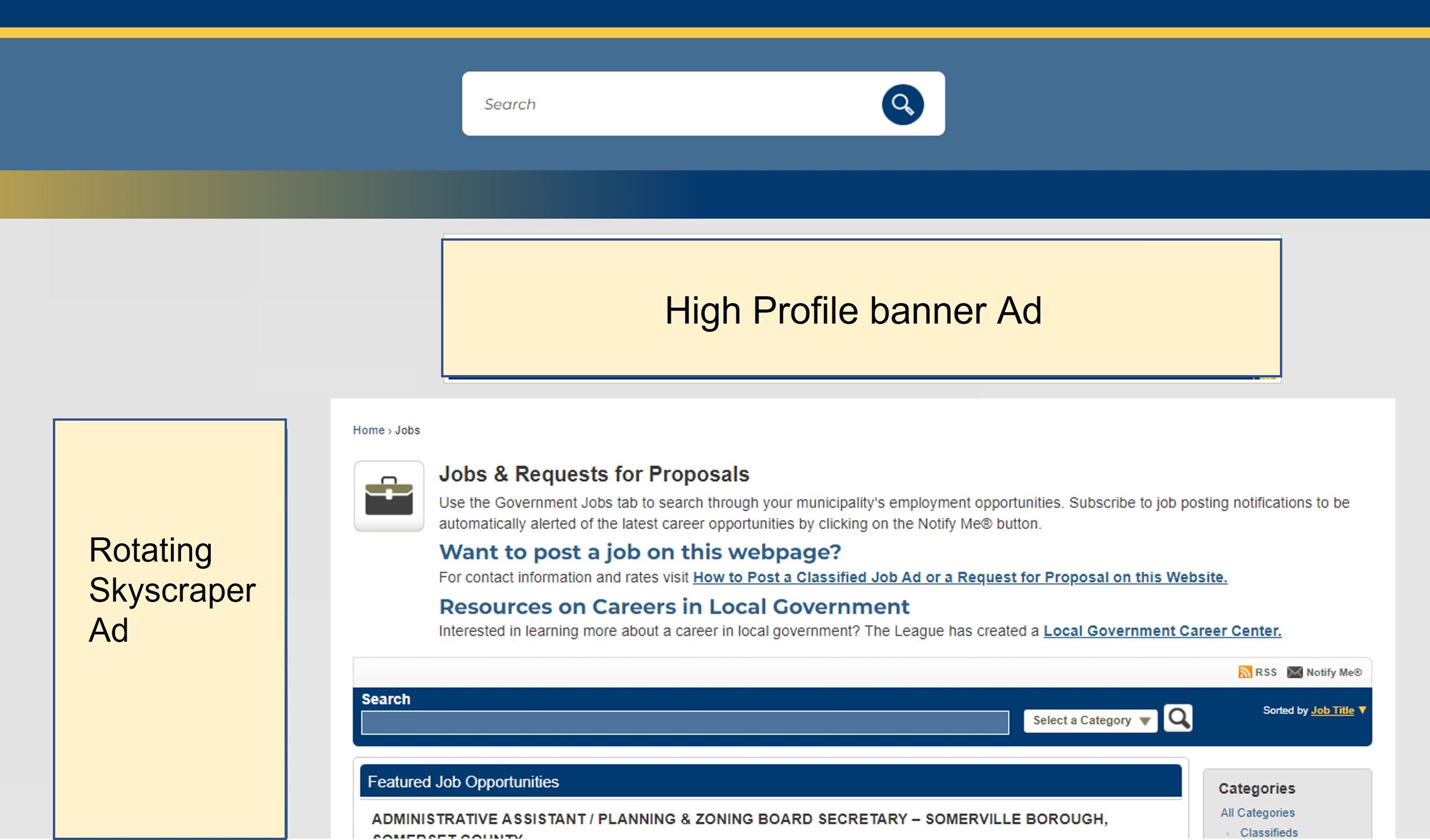 Vertical rectangle on the left-side of the page. Rotating; and featured below the side menu. Length of the side menu varies by page.